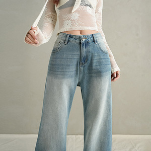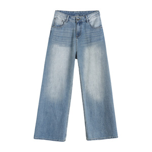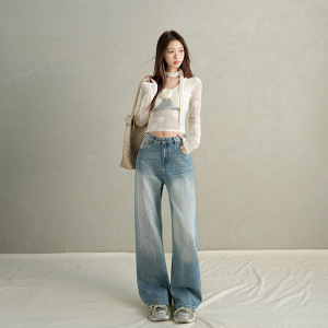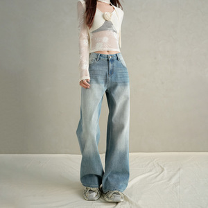 2025秋季新款&美式时髦搭子肌理感磨白显瘦百搭阔腿拖地牛仔裤女