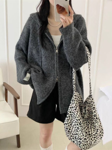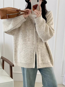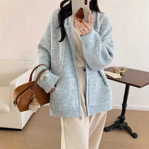 毛衣开衫外套女秋冬软糯连帽拉链新款宽松慵懒风加厚休闲针织上衣