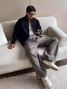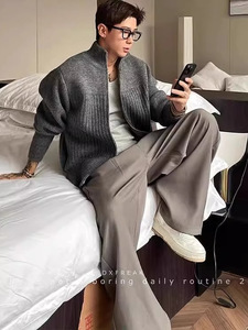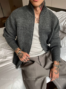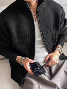 工厂跨境「老钱风 纹理坑条」轻奢高级开衫毛衣男拉链针织衫上衣