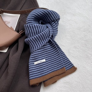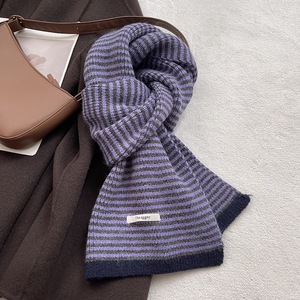 博主同款复古条纹仿羊绒针织围巾女韩版温柔氛围感学生情侣小围脖