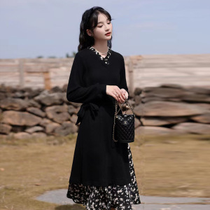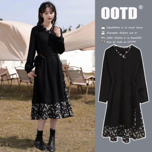 2025秋装哺乳衣假两件绝美高级感碎花拼接收腰显瘦外出喂奶连衣裙
