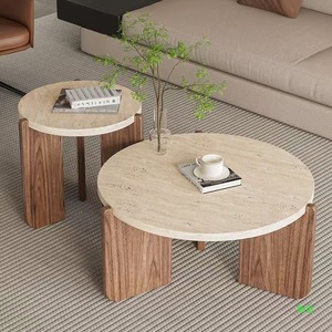 洞石茶几客厅简小茶家用小户型极简民宿圆形大理石阳台实木矮桌