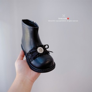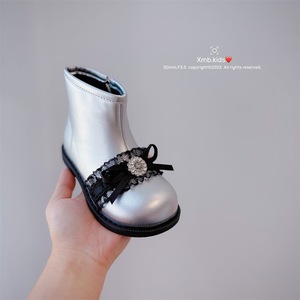 2025年冬季新款童鞋小女孩甜美蕾丝公主靴韩版加厚保暖女童时装靴