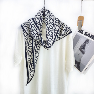 百搭丝毛菱形巾花边配饰围巾时尚双面真丝羊毛印花领巾保暖女披肩