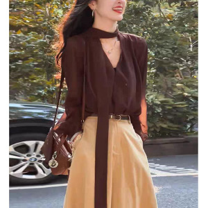 大方得体一整套装2025秋冬新款通勤气质宽松飘带显瘦上衣半裙女装