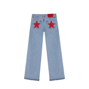 欧美复古五角星印花牛仔裤女跨境街头原宿宽松休闲直筒牛仔裤长裤