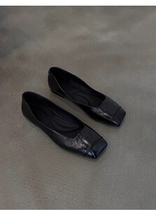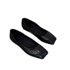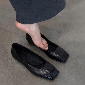 2025秋冬新款黑色复古显瘦舒适通勤平底鞋女极简方头一脚蹬小单鞋