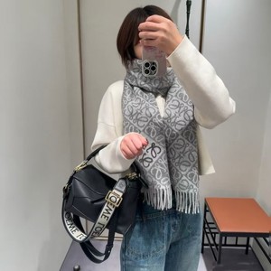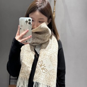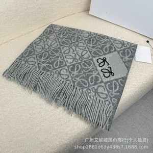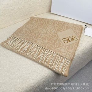 新款棋盘格羊绒围巾植绒立体刺绣logo羊毛披肩罗涂鸦字母秋冬围脖