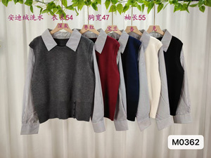 秋季新款法式拼接针织假两件条纹衬衫女装高级设计感长袖针织上衣