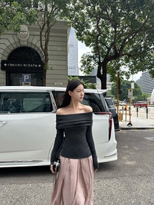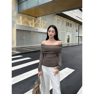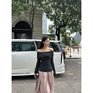 5werkwen 轻熟冷调 早秋设计感一字领慵懒上衣
