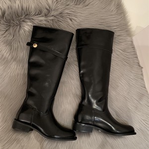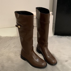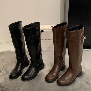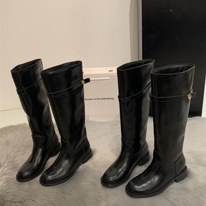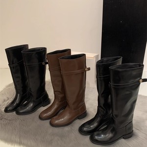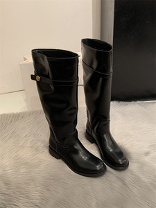 不过膝平底长靴子女2025新款秋冬法式高筒黑色骑士靴显瘦中长筒靴