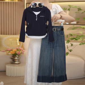 女童套装春秋装2025新款儿童休闲假两件针织外套牛仔裤两件套潮酷