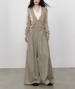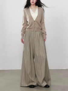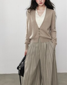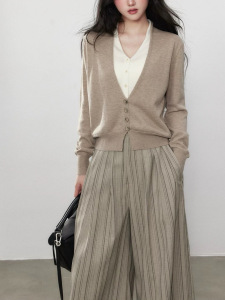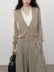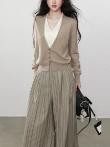 气质松弛感假两件V领针织衫秋季新款叠穿设计毛衣开衫氨纶开衫款