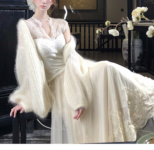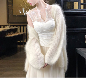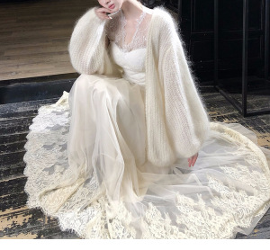 【樱吹雪】纯欲风v领胸垫上衣网纱半裙 开衫三件套蕾丝女内搭系列