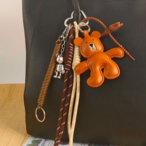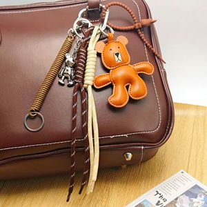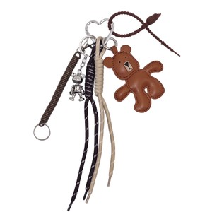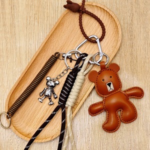 miu系咖色皮革小熊合金四肢可活动小熊钥匙扣编织绳包包挂件挂饰