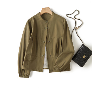 利落干练有型小立领 宽松显瘦落肩袖短款秋季外套夹克小个子