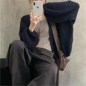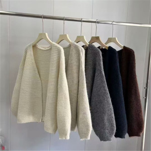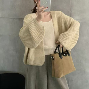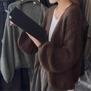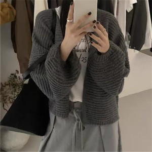 跨境V领无扣短款简约针织开衫2025秋冬新款时尚宽松百搭女式外套
