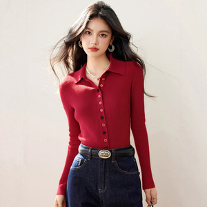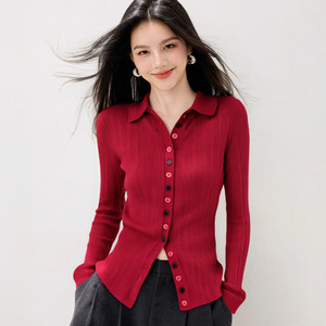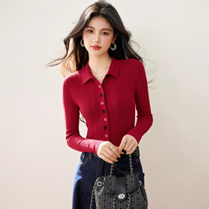 R9346修身单排扣针织开衫女士小众设计感秋冬新款内搭外套亚马逊