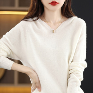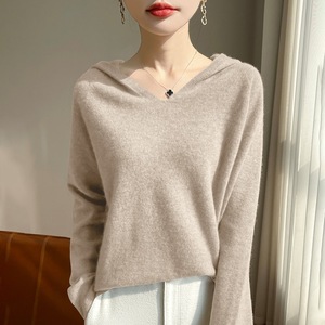 包芯纱面料 2025秋冬连帽女纯色针织打底帽衫卫衣针织衫毛衣外穿