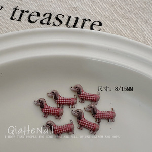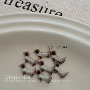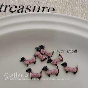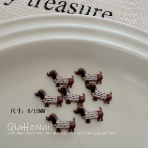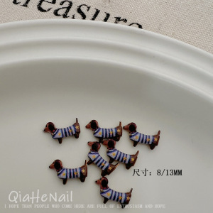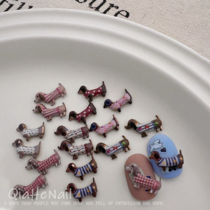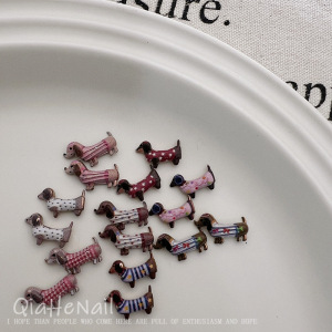 萌趣斑点条纹腊肠狗立体彩色滴油DIY卡通合金指甲装饰配件素材