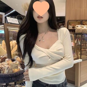 春季2025甜辣妹纯欲修身显瘦短款韩版小众v领长袖打底衫女装上衣