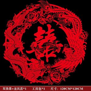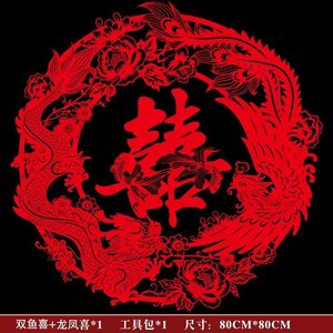 中式超大订婚新娘喜字婚房布置专用结婚拍照装饰道具龙凤剪纸用品