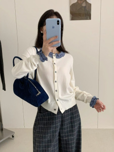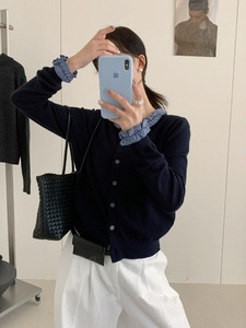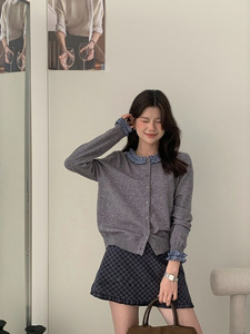 韩系设计感拼接木耳领毛衣针织开衫秋季新款女装气质时尚长袖上衣