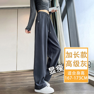 香蕉阔腿裤女春秋薄款休闲小个子新款高腰夏季窄版灰色直筒运动裤