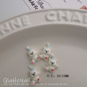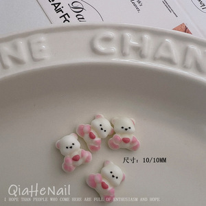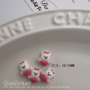 梦幻可爱小熊爱心腮红蝴蝶结美甲饰品嘟嘟熊树脂穿戴指甲装饰配件