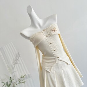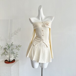 时尚一字肩条纹设计百搭日常上衣女秋半裙