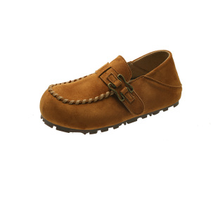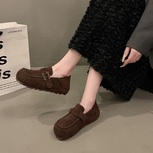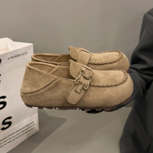 软皮全包勃肯鞋女2025秋季新款一脚蹬厚底豆豆鞋懒人内增高乐福鞋