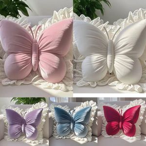 新款公主风柔软办公靠枕现代蕾丝蝴蝶结抱枕卧室沙发靠垫蝴蝶抱枕
