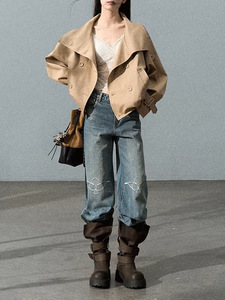 OAKMO/莱赛尔棉双排扣大廓形短款风衣外套夹克秋季穿搭立领大衣