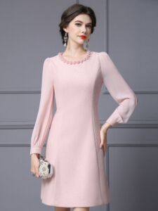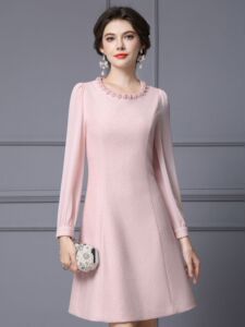 智丽大方得体绝美连衣裙2025秋装新款小香风精致珍珠收腰A字裙子