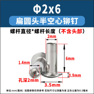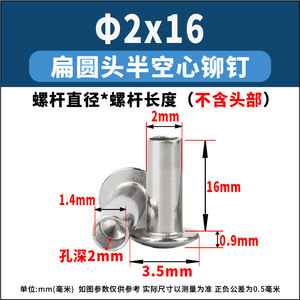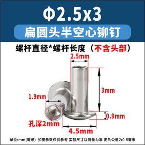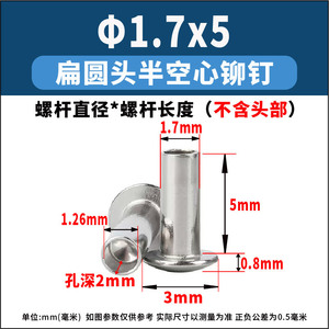 厂家直销304不锈钢半空心铆钉批发M1.5-M3.5扁圆头中空敲击铆钉