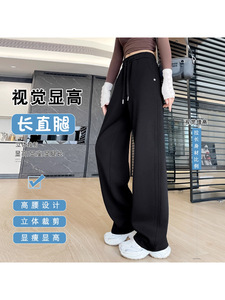 运动裤女春秋季薄款2025新款高腰小个子卫裤窄版显瘦直筒阔腿裤