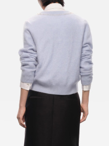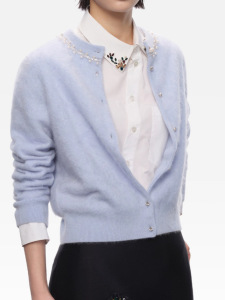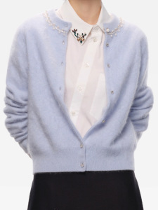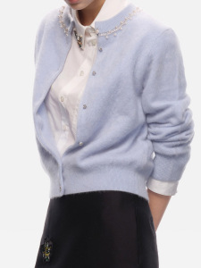 ER女装针织圆领女士开衫2025年早秋新品钻扣装饰单排扣羊绒衫外套