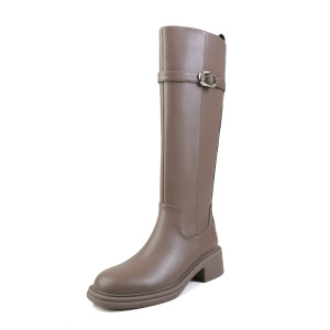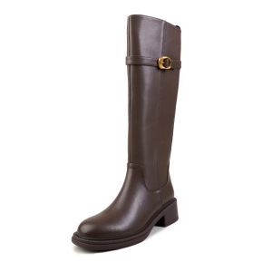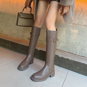 腿精两种筒围全牛皮大筒围骑士靴2025粗中跟圆头真皮平口高筒长靴