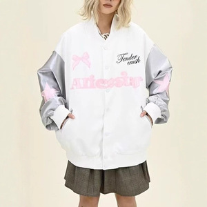 跨境棒球服慵懒潮流流行美式蝴蝶结星星刺绣男女夹克外贸卫衣外套