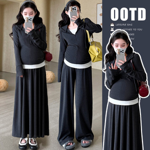 现货新品慵懒风松弛感假两件孕妇上衣+半身裙+阔腿裤孕妇套装
