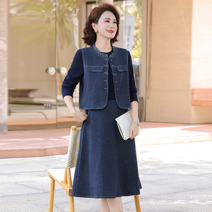 妈妈洋气质套装裙子2025秋季显瘦马甲外套婚礼连衣裙喜婆婆两件套