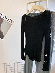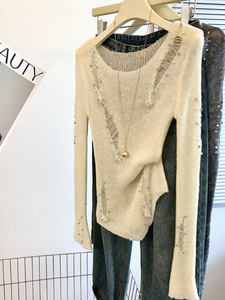 自留款推荐~重工钉珠镂空长袖针织衫女秋季新款气质修身百搭上衣