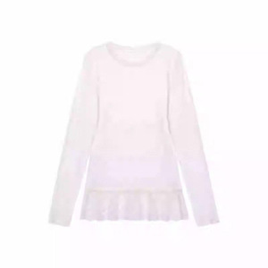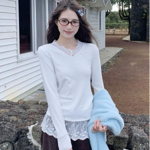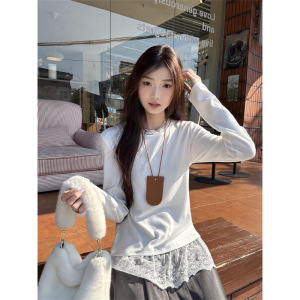 白色蕾丝花边正肩长袖T恤女秋冬季内搭打底衫上衣