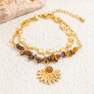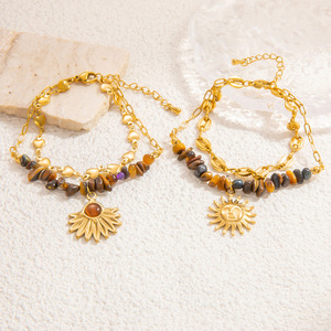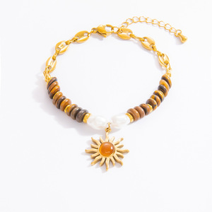 跨境珍珠手链轻奢高级感复古美拉德色系天然石手饰女钛钢手链女