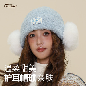 女秋冬ins百搭保暖护耳针织帽百搭宽松大头围冷帽可爱简约毛线帽