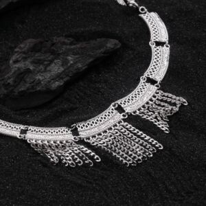 S925银<公主切>国风苗族缎带流苏皮绳项链<长短款>耳环