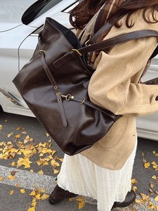 秋冬百搭通勤托特包腋下包包女2025新款大容量美拉德复古棕色单肩