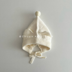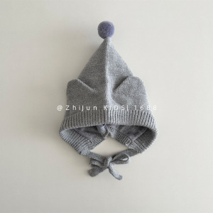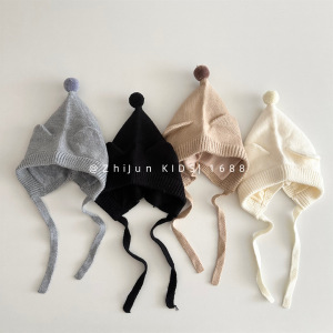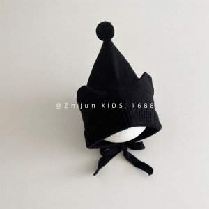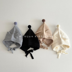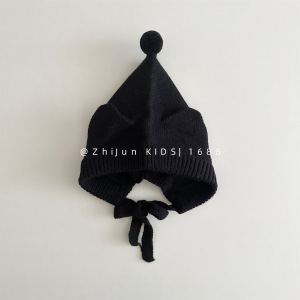 儿童针织帽秋冬男女童宝宝套头可爱尖头精灵帽系带耳朵防风护耳帽