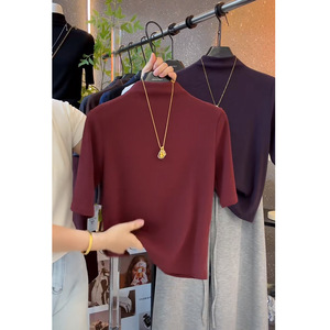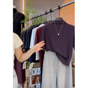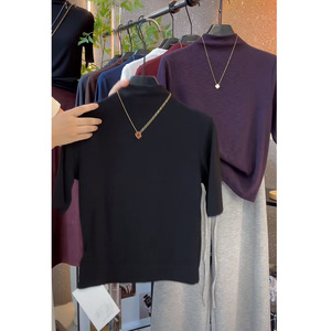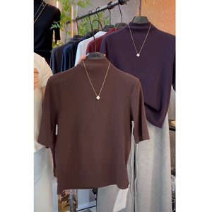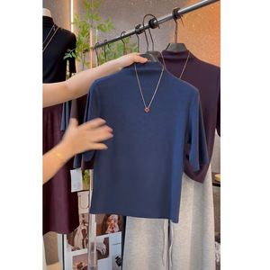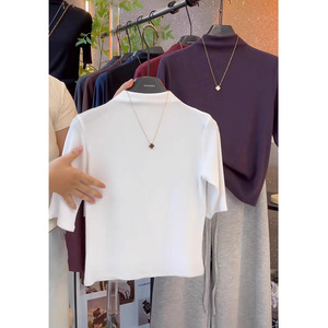 纯色半高领中袖内搭T恤女2025秋季新款时尚简约百搭显瘦打底上衣