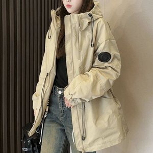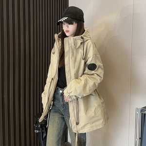 欧货大码冲锋衣女2024秋季收腰百搭风衣中长款工装外套上衣夹克